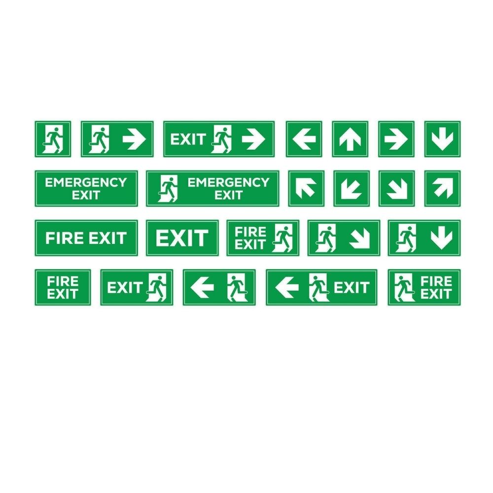 Emergency Exit Signs – Illuminated signs indicating the nearest exit. Can be LED, fluorescent, or photoluminescent.